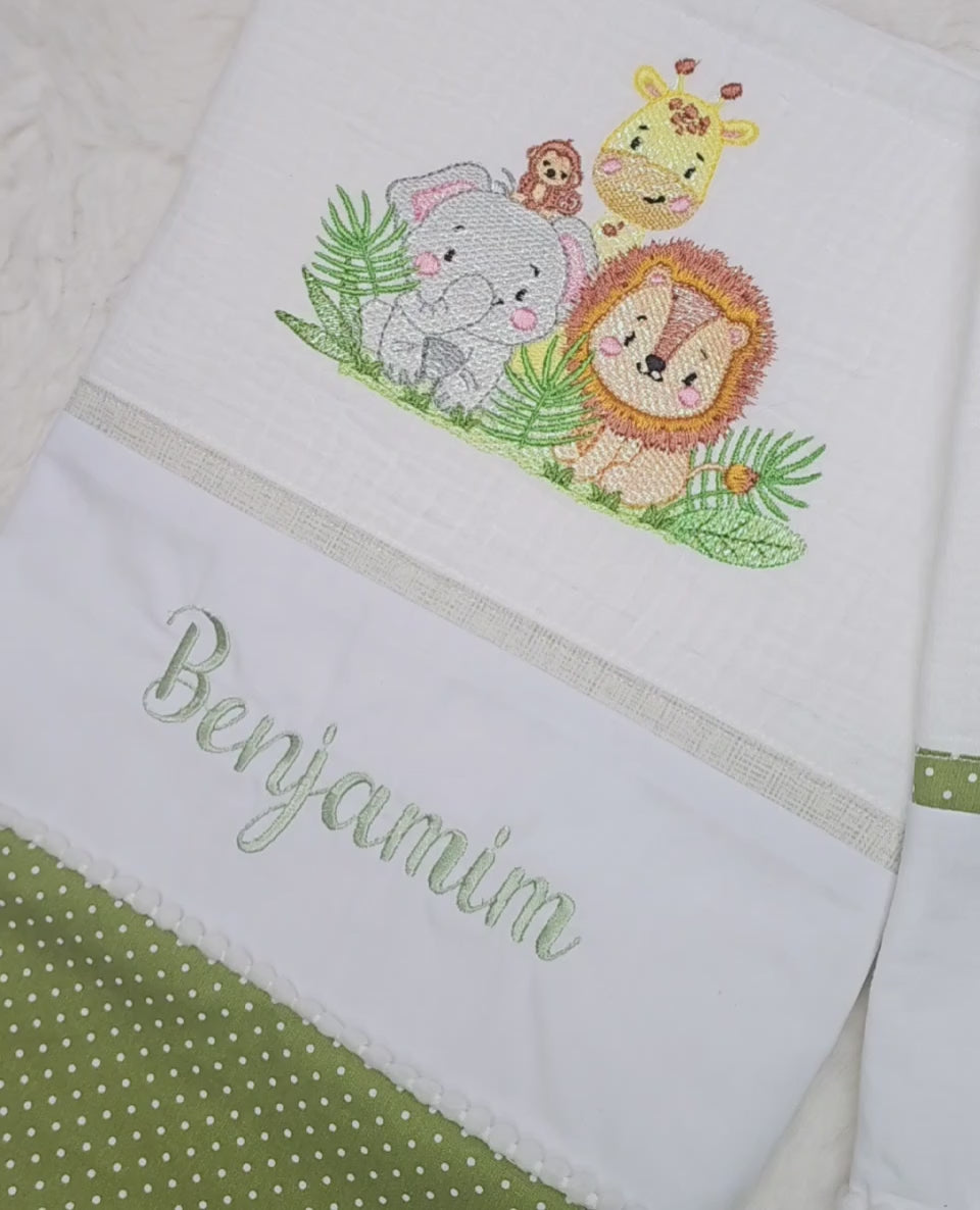 Ce lange de promenade en gaze de coton, doux et respirant, est un accessoire de luxe pour bébé. Il est entièrement réalisé à la main et décoré d’une broderie raffinée, personnalisable avec le thème et le prénom de votre choix. Vous pouvez également opter pour une touche nacrée, ajoutant un éclat subtil à la broderie. Celle-ci est appliquée sur une bande en coton pour éviter tout contact direct du revers avec la peau délicate de bébé.