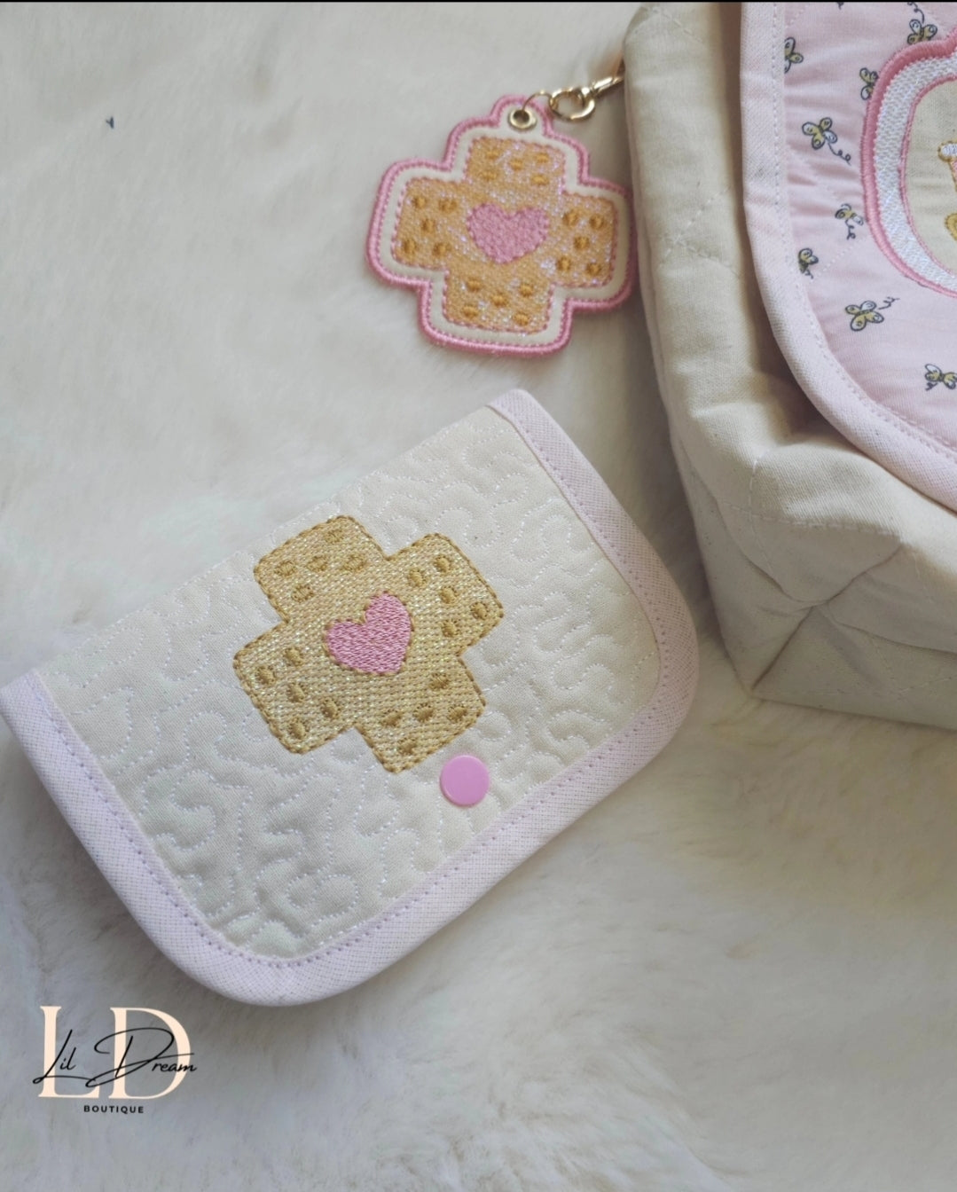 Cette charmante trousse à bobos est conçue pour accueillir tous vos petits indispensables de premiers soins, avec un design aussi fonctionnel qu'élégant. Fabriquée à partir de tissus délicats aux motifs doux, elle présente une belle finition nacrée sur les broderies, apportant une touche subtile de raffinement.